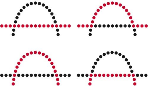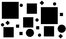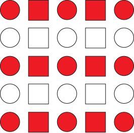 Weakest grouping effect compared to colour & size. We perceive it as columns of circles & squares rather than alternating circles & squares