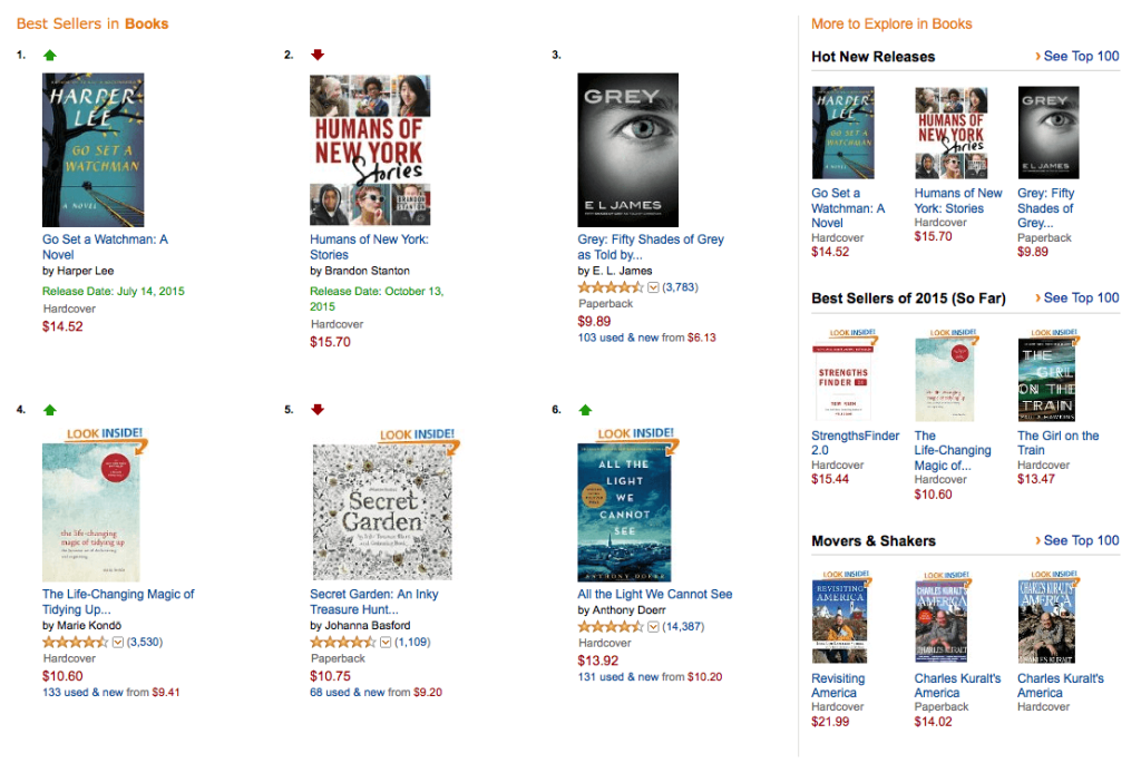 The books found in the Amazon store show groupings formed by the different rows and further divided by their segments. Similar books are placed in the ‘Best Sellers in Books’ category while the rest of the books are separated to the right column, showing the differentiation in overall category.
